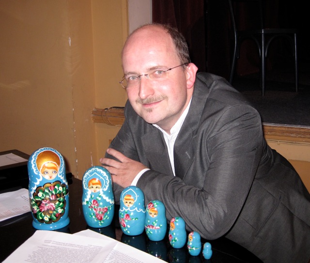 Weitere Fotos aus dem Theaterkreis im November 2009: Der Operndirektor Jens Neundorf von Ensberg sprach über die Inszenierung der Oper 'Eugen Onegin' (Tschaikowskij), die vom Theater in Bonn übernommen wurde. Liana Aleksanyan (Sopran) sang die bekannte Brief-Arie der Tatjana und George Stevens (Bariton) den Monolog Onegins, begleitet von Studienleiter Burkhard Bauche am Flügel. Ein besonderes Schmankerl bildete zum Schluss die ironisch verfremdete Darstellung der Oper durch Burkhard Bauche, der zum großen Vergnügen des Auditoriums alle Rollen sprach, spielte und sang. – Zum Ausklang im Restaurant erschien auch GMD Alexander Joel.