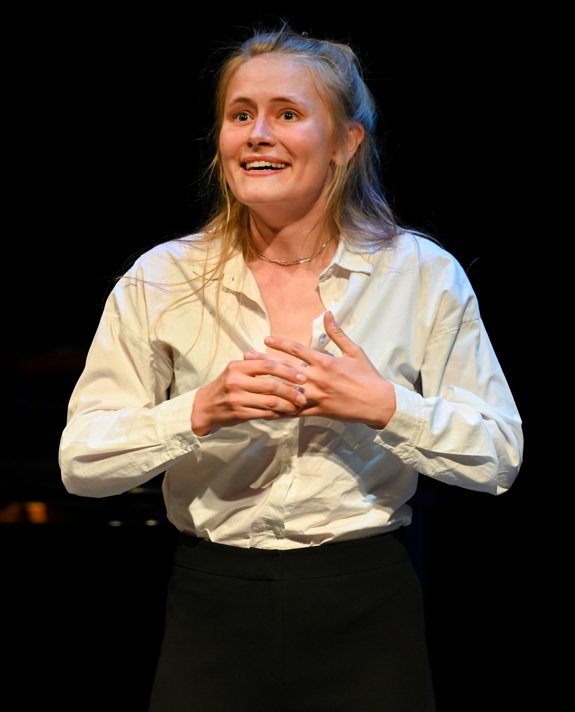 Unsere erste Reise führt uns zur Schauspieleren Nina Wolf ! ![]() Hier bei der Verleihung des Förderpreises 2022 der Staatstheater Freunde Braunschweig (Foto: Andreas Greiner-Napp) Nina Wolf avancierte am Staatstheater Braunschweig (2020-2024) schnell zum Publikumsliebling und hat u.a. in den Theaterstücken Robin Hood, Biedermann und die Brandstifter, Das mangelnde Licht, Mädchenmörder :: Brunke, Schimmelreiter, Elektra, wir müssen reden, Stolz und Vorurteil*(*oder so) mitgewirkt. Seit der Spielzeit 2024/25 ist sie festes Ensemblemitglied am Schauspielhaus in Frankfurt. Nach einem Jahr Staatstheater-Abstinenz haben wir Nina Wolf zu einem Interview eingeladen, um zu erfahren, wie sie zur Schauspielerei kam und wie es ihr in der Zwischenzeit ergangen ist. Frankfurter Schauspielensemble Nach der Station Staatstheater Braunschweig bist Du am Schauspielhaus in Frankfurt engagiert. Im September (2025) beginnt Deine 2. Spielzeit dort. Bist Du im Ensemble und in Frankfurt (wieder) angekommen? Du bist in Frankfurt aufgewachsen, so ganz unbekannt ist die Stadt an sich ja nicht… Ich war 8 Jahre aus Frankfurt weg und wohne jetzt in einem anderen Stadtteil. Mehr in der Innenstadt. Die Stadt hat sich in der Zwischenzeit verändert und ich kann vieles neu kennenlernen. Mit dem Schauspielhaus ist es genauso. Bisher war ich nur Besucherin dort und gehöre jetzt zum Ensemble. Dort bin ich sehr gut angekommen. In der zweiten Spielzeit ist mir der Mikrokosmos gut vertraut. Das Staatstheater Braunschweig ist ein Mehr-Spartenhaus. Am Schauspielhaus in Frankfurt gibt es, wie der Name schon sagt, ausschließlich Schauspiel. Das Frankfurter Ensemble ist größer besetzt. Dafür gibt es in Braunschweig wiederum drei Spielstätten. Spielst Du nun mehr oder gleich viele Produktionen in einer Spielzeit? In Frankfurt spiele ich weniger Produktionen. Dafür sind es mehr Vorstellungen. In Frankfurt habe ich nun etwas mehr Zeit zwischen den Produktionen. Das ist schon entspannender. Mir bleibt mehr Zeit, Inspirationen zu sammeln und für die Beschäftigung mit den neuen Texten. Durch die diversen Sparten am Staatstheater Braunschweig wurde in den letzten Jahren öfter sparten-übergreifend gearbeitet. Fehlt Dir diese Kombination? Wobei man ja anmerken kann, dass Du in Frankfurt sogar etwas Tanz im großen Gatsby in der Rolle zu spielen hattest. Auch in Frankfurt habe ich schon „Spartenübergreifend“ gearbeitet, in zwei Produktionen habe ich getanzt und in einer anderen Produktion gesungen. Gesang und Schauspiel ergänzen sich teilweise ja ziemlich gut…wie bei Stolz und Vorurteil…ihr seid oft „Multitasking“ aktiv. In der aktuellen Produktion „So langsam so leise“ tanze ich eigentlich durchgängig, dafür habe ich eine japanische Tanzform namens Butoh gelernt! Welche Produktion darf man in Frankfurt auf keinen Fall verpassen in dieser Spielzeit? Und in welcher Produktion bist Du zu sehen (die man auf keinen Fall verpassen darf)? So langsam so leise ist eine Uraufführung und ich bin begeistert vom Text. Die erzählte Geschichte und die Umsetzung sind intensiv und wunderschön. ![]() Nina Wolf in So langsam so leise (UA) am Schauspielhaus Frankfurt (Foto: Jessica Schäfer) In Frankfurt gibt es so viel zu sehen. Die ganzen Museen. Und die Kleinmarkthalle. Texte lerne ich gern im Bethmannpark, ein kleiner, sehr schön angelegter Park, mitten in der Stadt. Kindheit und Werdegang Du stammst aus einer Schauspielerfamilie. Kannst Du Dich noch daran erinnern, wann in Dir der Wunsch herangereift ist, ebenfalls diese Profession ausüben zu wollen? Gab es einen Schlüsselmoment? Im Nachhinein frage ich mich oftmals, was dieser Schlüsselmoment wohl war. Dass dieser Wunsch herangereift ist, lag mehr im Machen als im Schauen. Ich war immer bei meinen Eltern mit dabei und habe schon als Kind mit meinen fünf Freundinnen im Garten Theater gespielt. In diesem Erlebnis, etwas zu schaffen und die Freude daran sowie die absolute Konzentration darauf, gepaart mit den Erfahrungen der Eltern und der Option, dass es sich dabei um einen echten Beruf handelt, daraus hat sich langsam der Wunsch, Schauspielerin zu werden, herauskristallisiert. In der Schule war ich in einer tollen Theater-AG und wir mussten ein Abschlussstück selbst konzipieren. Und dieser Prozess des Entwerfens, des Schreibens und des Umsetzens hat mich sehr euphorisch gemacht. Als ich mit der Schule fertig war, wollte ich dem ganzen eine Chance geben. Ich musste es einfach probieren. Du bist des Öfteren im Fernsehen zu sehen (z.B. Rentnercops (2023), Wo ist meine Schwester (2021-2022), Soko Leipzig (2020) und haben bereits u.a. an der Seite von Martina Gedeck, Kristin Suckow, Marlen Ulonska, Heino Ferch, Denis Petkovic und Jürgen Mai gespielt. Bereitet man sich auf Fernsehrollen anders vor, als wenn man eine Figur auf der Bühne darstellt? Die Vorbereitung unterscheidet sich tatsächlich. Zwar lerne ich als allererstes natürlich den Text und da gibt es keinen Unterschied. Aber im Theater ist der Prozess viel umfangreicher und körperlicher. Es ist ein ganz anderer Ausdruck. Vor der Kamera ist es viel konzentrierter und kleiner. Ganz viel macht die Szenerie und das Drumherum aus, dem ich mich dann entsprechend anpasse. Siehst Du Dich eher auf der Theaterbühne oder im Fernsehen? Was präferierst Du? Zurzeit sehe ich mich eher auf der Theaterbühne, denn die dortigen Projekte haben mich bislang mehr begeistert. Aber ich liebe Filme und mag auch die Arbeit vor der Kamera. Von daher möchte nicht ausschließen, dass ich irgendwann einmal vielleicht den Film präferieren werde, wenn mir ein interessantes Projekt angeboten wird. Gibt es für Dich so etwas wie eine absolute Traumrolle, die Du gerne einmal spielen würdest? In dem von der Autorin Lot Vekemans stammenden Theaterstück Ismene, Schwester von würde ich gerne einmal die Ismene spielen. Diese Rolle liegt mir sehr am Herzen. Und wenn ich diese einmal spielen dürfte, würde sich für mich ein Kreis 